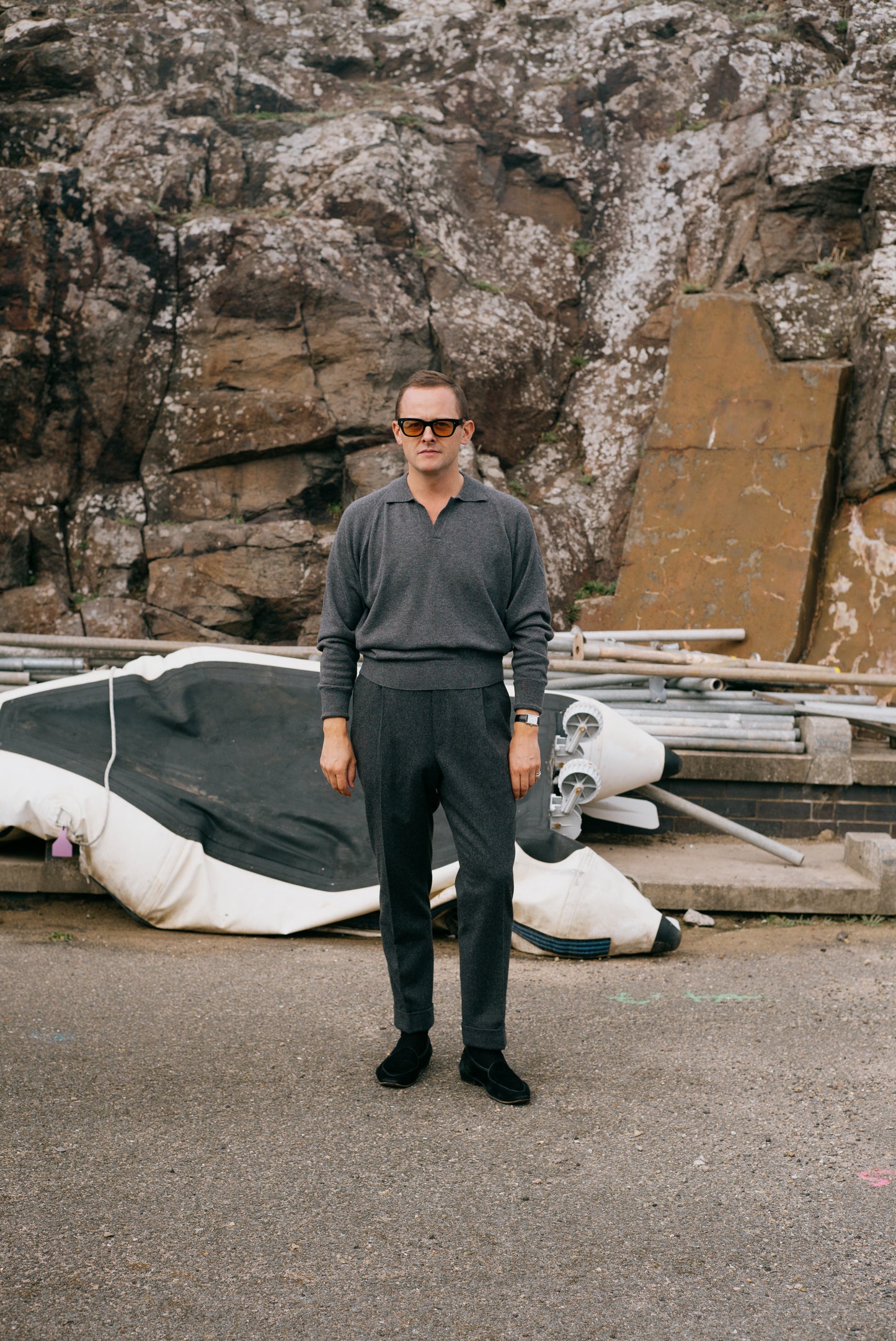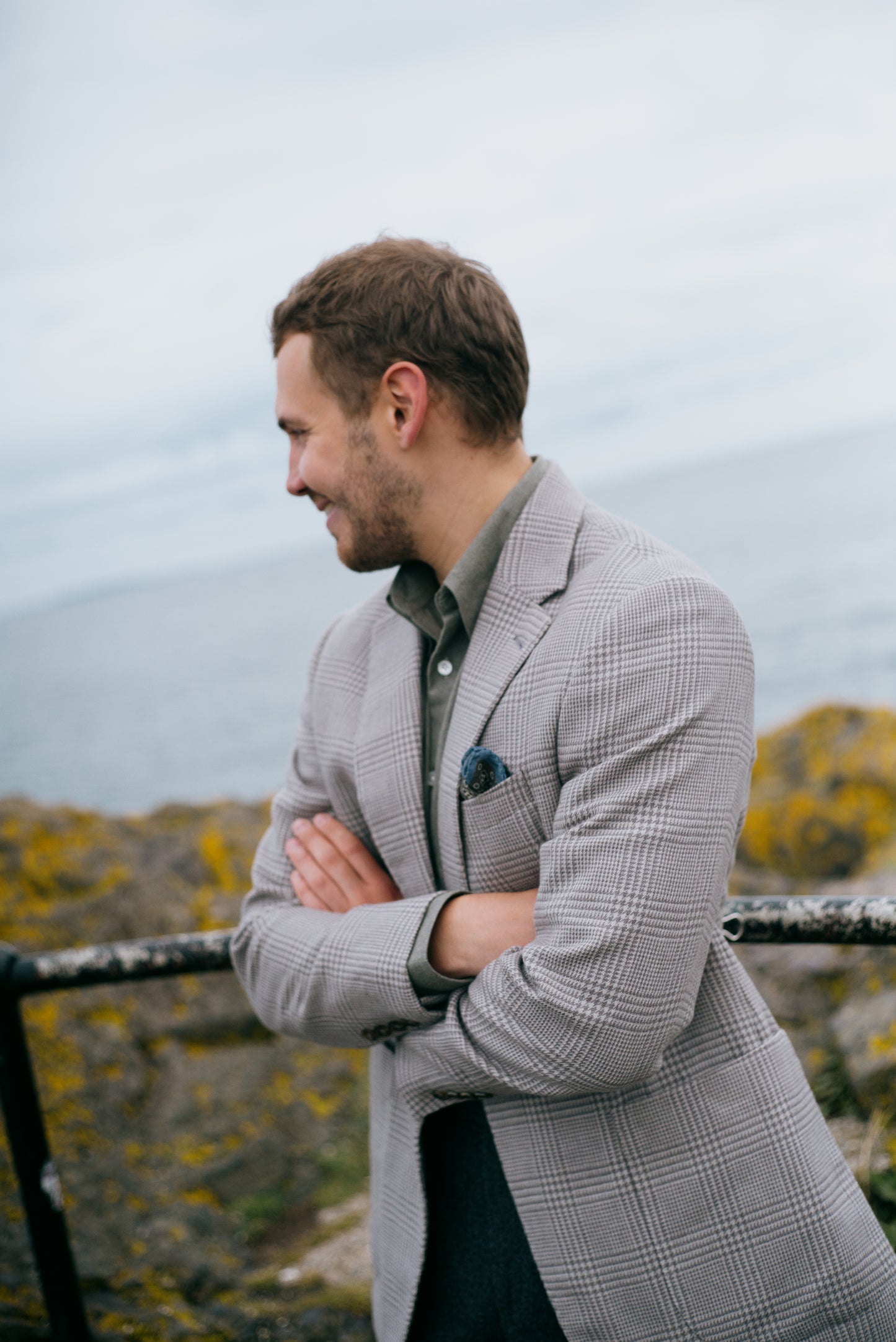 The natural colours around North Berwick present evergreens of Scots pines, earthy browns and russets, slate greys, stormy blues and soft creams. Inspiring classic tailoring with rugged elements. Overcoats with generous lapels to guard against wind. Jackets in tweed, wool & cashmere, cut softly, with clean lines and knitwear in warming wools, punctuated by leather, suede and flannel.