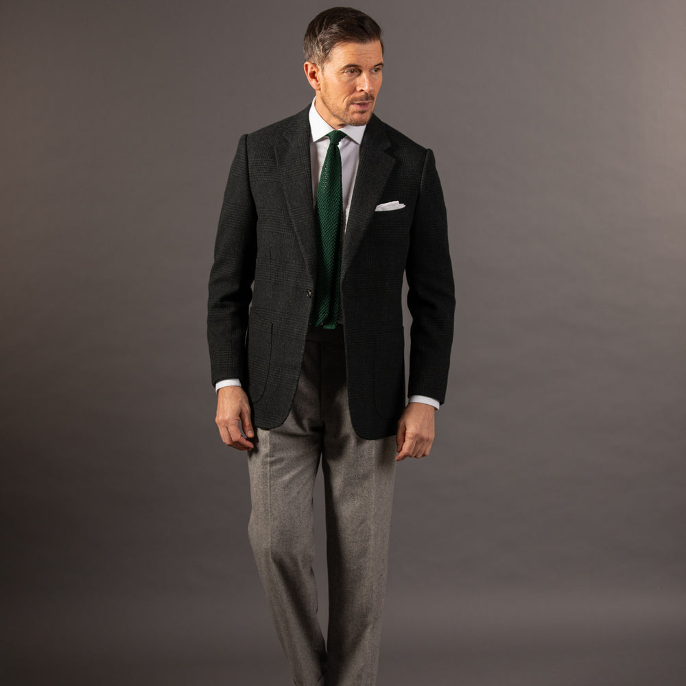 With an incredibly soft handle, this cashmere wool provides excellent warmth, plenty of drape and a rich texture and is designed with a rich green glen check design.