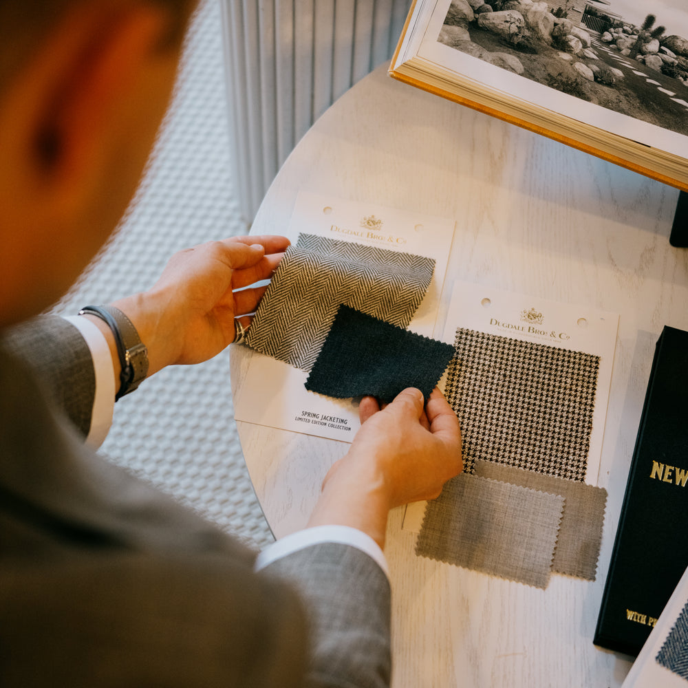 Working with our team of tailors and designers, we will put together a unique proposition of the worlds finest fabrics, unique designs incorporating both our limitless bespoke capability and broad Ready to Wear collection.